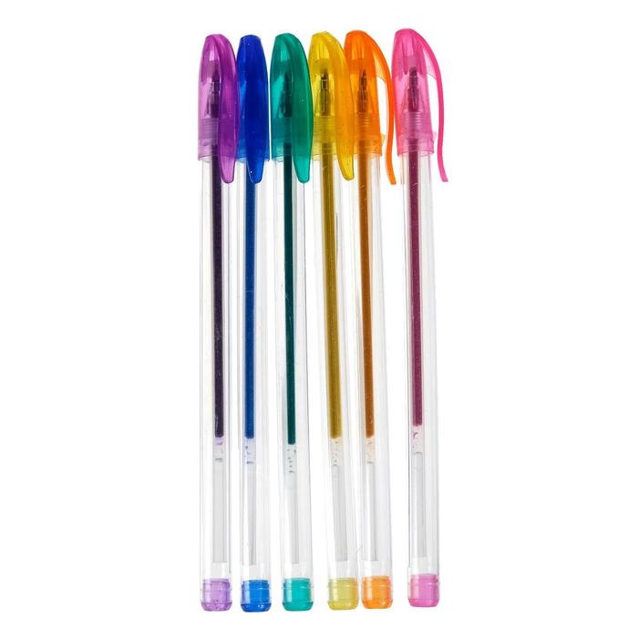Набор гелевых ручек, 6 цветов, корпус цветной с белыми вставками, в блистере
