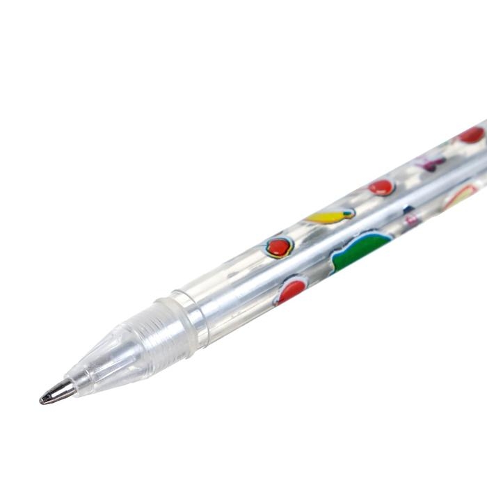Набор гелевых ручек, 12 цветов, металлик, корпус с рисунком, в блистере на кнопке