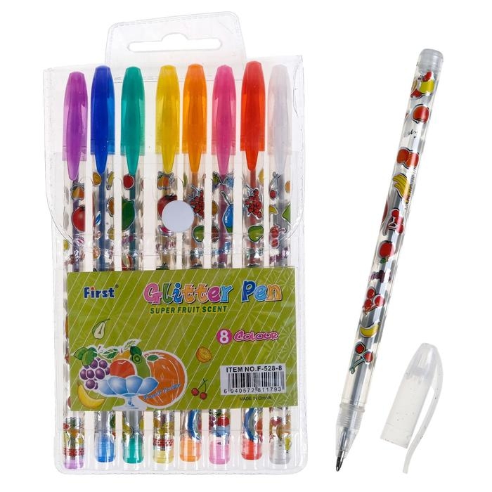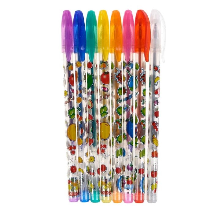 Набор гелевых ручек, 8 цветов, корпус с рисунком, металлик, в блистере на кнопке