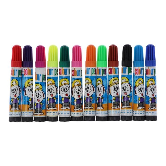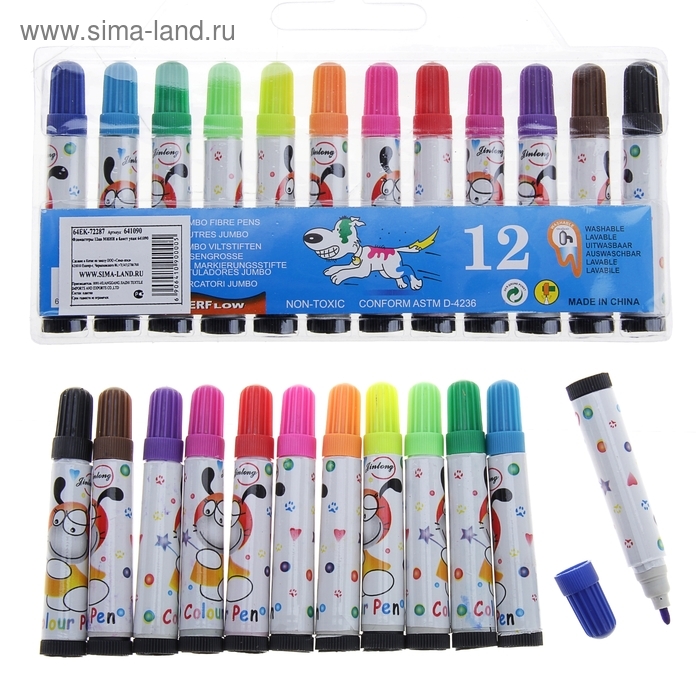 Фломастеры 12цв. МИНИ – специальные фломастеры, разработанные для удобства самых маленьких начинающих художников. Чернила легко отстирываются с различных типов ткани. Специальный пишущий узел выдерживает даже сильное нажатие и сохраняет свою форму в течение всего периода использования.