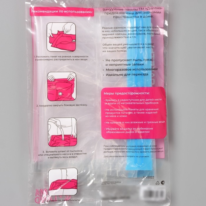 - Не храните в таких пакетах еду, кожаные и меховые изделия.