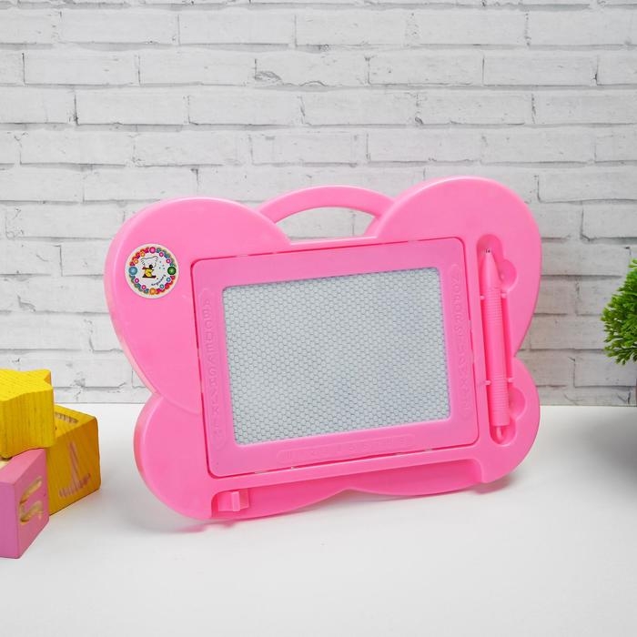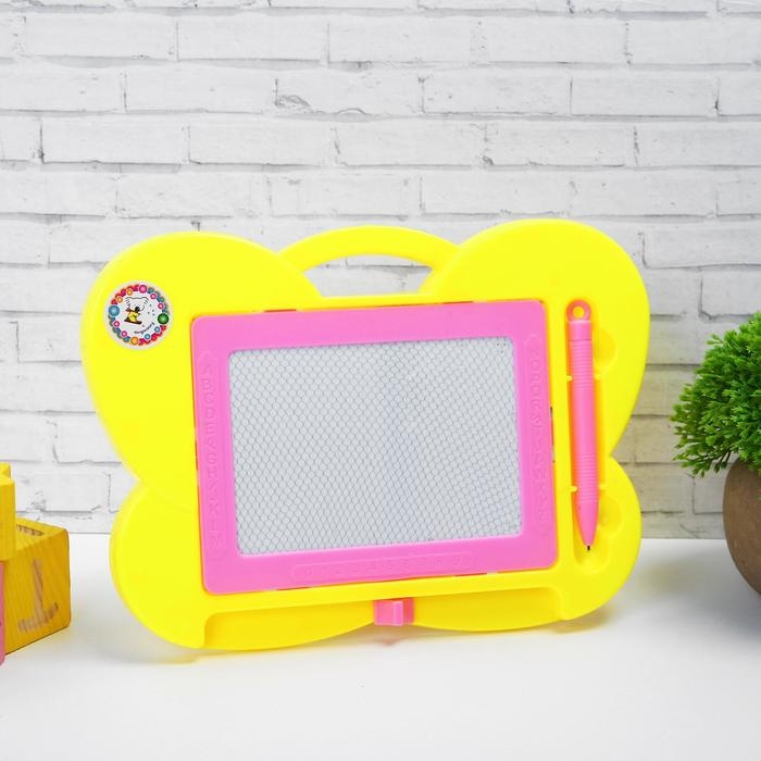Доска для рисования магнитная «Бабочка» чёрная крошка, цвета МИКС научит ребёнка рисовать! Техника работы достаточно проста: нужно провести стилусом по доске, и появится чёрный контур. Если что-то не понравится, достаточно просто потянуть за рычаг, расположенный с боковой стороны доски, и поле сразу станет чистым.