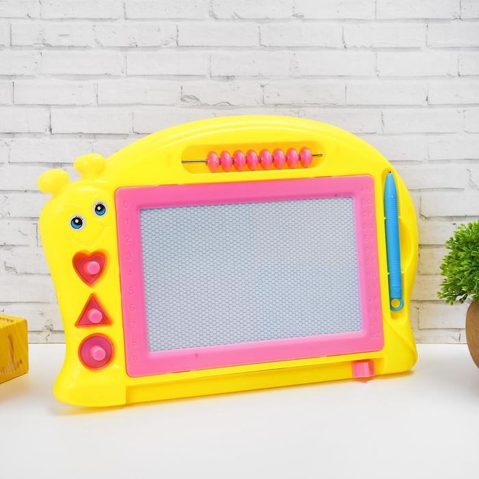 Магнитная доска для рисования с ручкой — это возможность занять малыша и проявить его художественные навыки без использования бумаги. Такая игрушка удобна тем, что изображение легко стереть с помощью специальной полоски.
