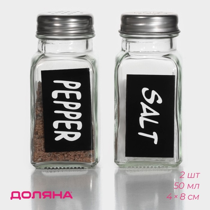 Набор для специй из стекла Доляна «Стиль», 2 предмета: солонка 50 мл, перечница 50 мл, h=7 см