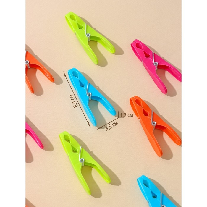 Прищепки бельевые «Пингвин», 8 см, 12 шт, цвет МИКС