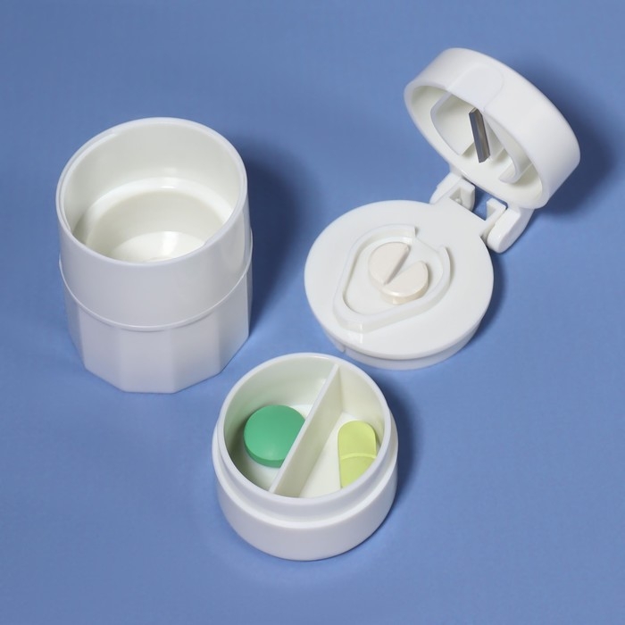 Таблетница с таблеторезкой, размельчителем и мензуркой, d = 4 × 6,5 см, цвет белый