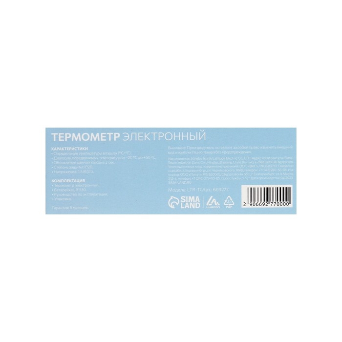 Термометр Luazon LTR-14, электронный, датчик температуры, датчик влажности, белый