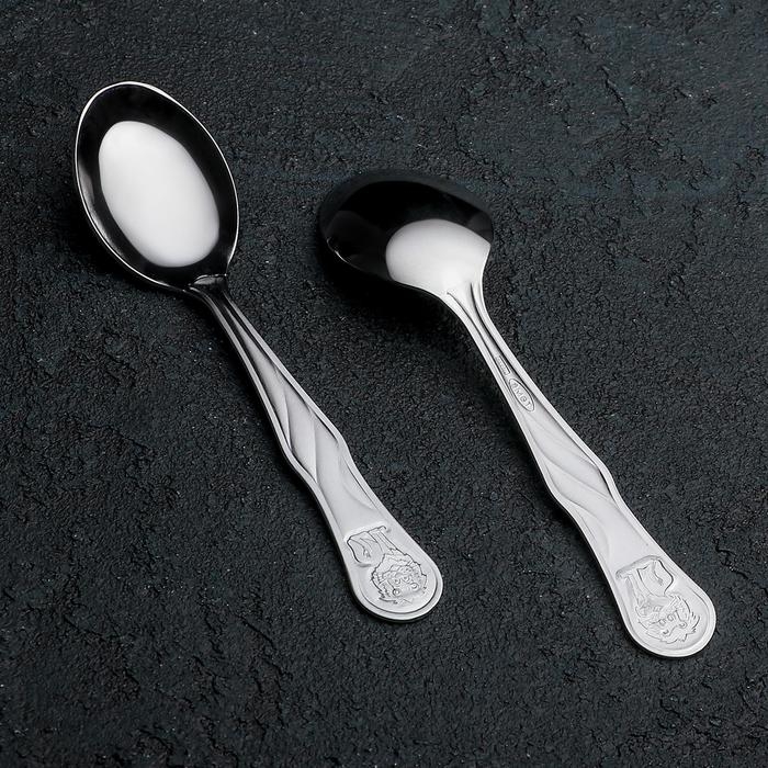 Ложка детская столовая «Антошка», длина 16 см, толщина 2 мм, цвет серебряный