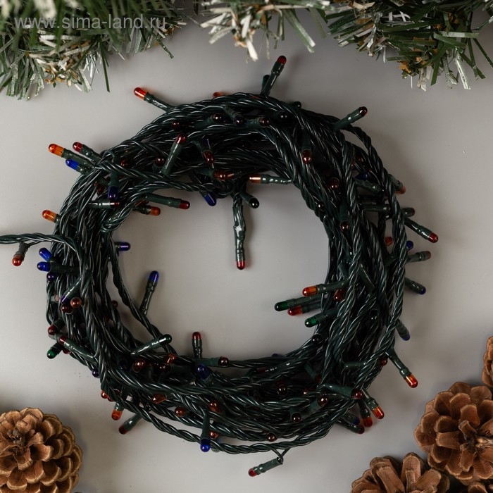 Гирлянда «Нить» 7 м, IP20, тёмная нить, 180 ламп, свечение мульти, 8 режимов, 220 В
