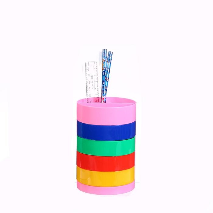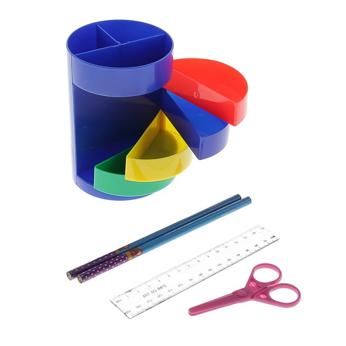 Настольный набор детский "Веер-радуга", из 5 предметов: подставка, ножницы, линейка, 2 карандаша, МИКС