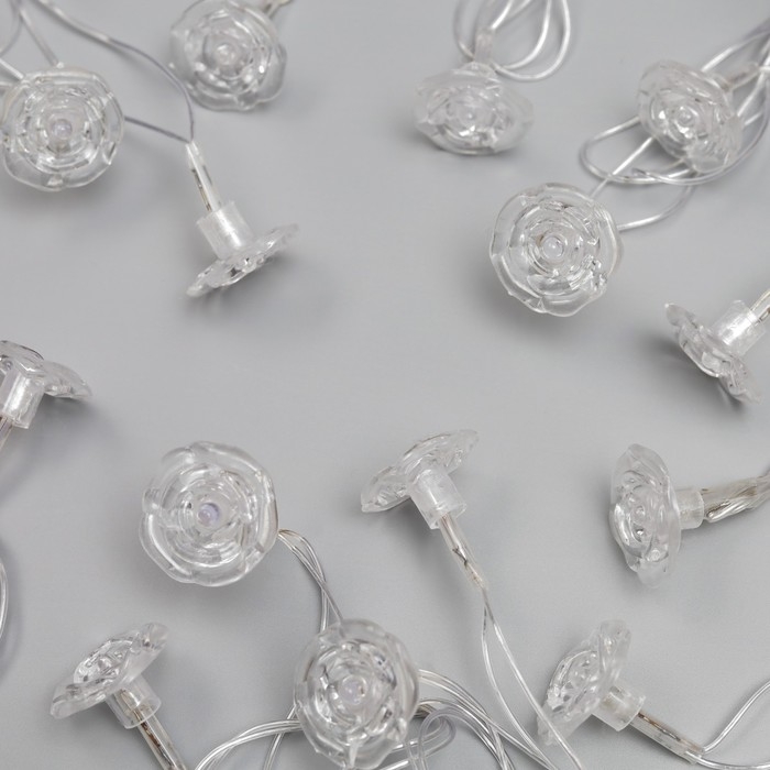 Гирлянда «Нить» 5 м с насадками «Цветочки», IP20, прозрачная нить, 20 LED, свечение мульти (RG/RB), мигание, 220 В