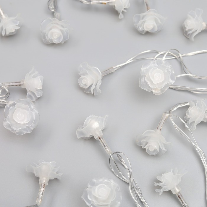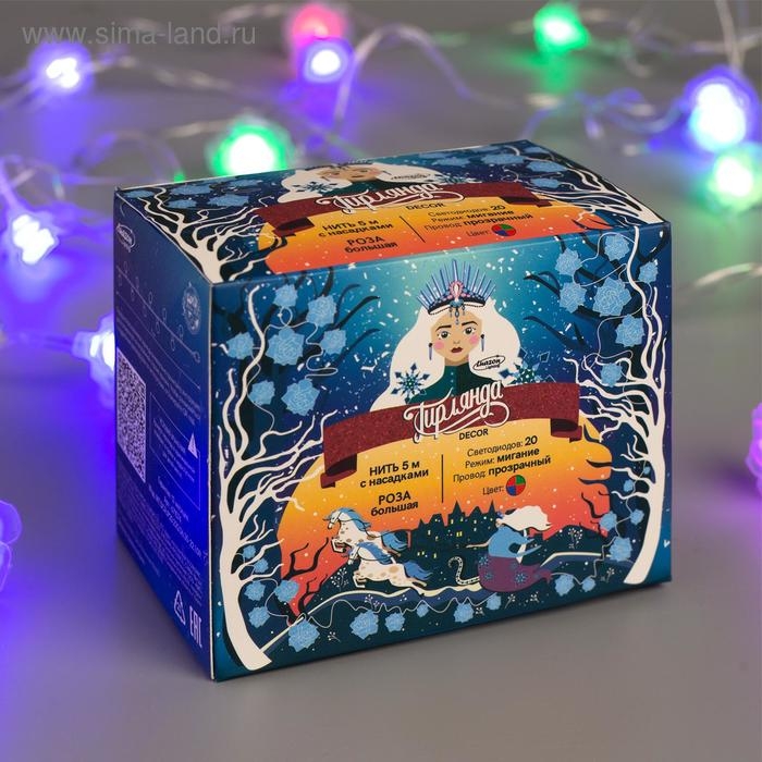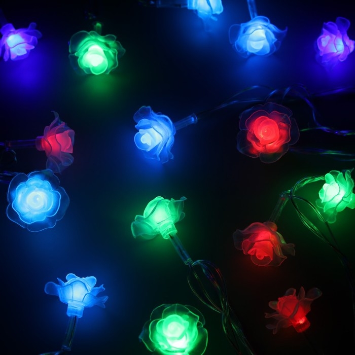 Гирлянда «Нить» 5 м с насадками «Розы большие», IP20, прозрачная нить, 20 LED, свечение мульти (RG/RB), мигание, 220 В
