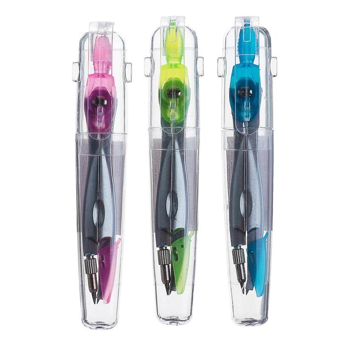 Циркуль металлический в пластиковом пенале, с запасными грифелями