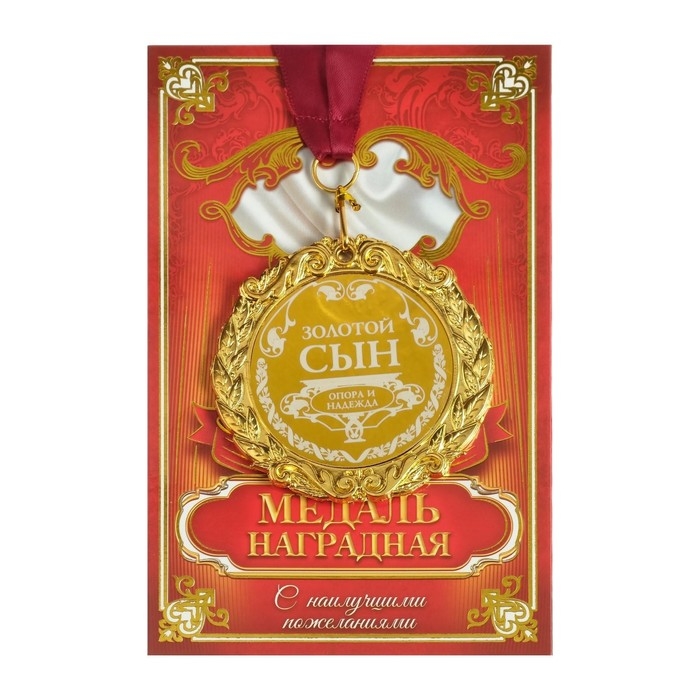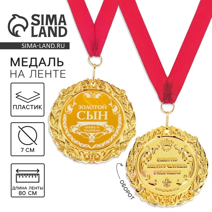 Сделать любое поздравление особенным поможет медаль с лазерной гравировкой «Золотой сын», d=7 см.! Такая награда преподносится лишь самым достойным. Разработанная в эксклюзивном дизайне медаль станет отличным дополнением любого подарка и создаст торжественное настроение!