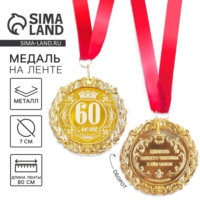 Сделать любое поздравление особенным поможет медаль юбилейная с лазерной гравировкой «60 лет», d=7 см.! Такая награда преподносится лишь самым достойным. Разработанная в эксклюзивном дизайне медаль станет отличным дополнением любого подарка и создаст торжественное настроение!