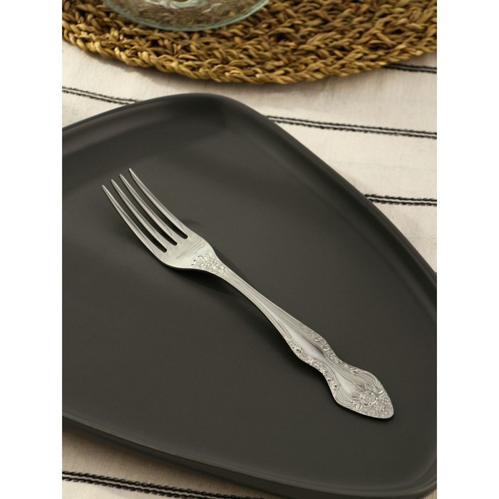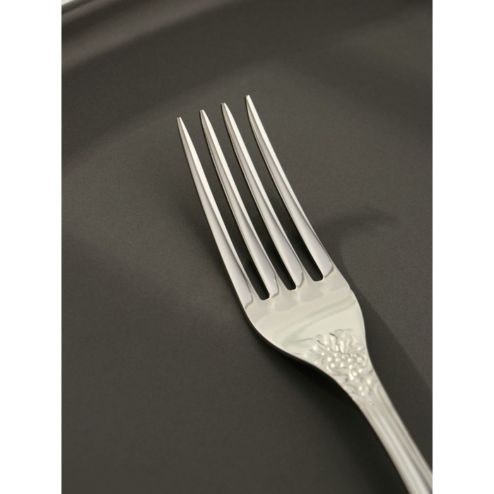 Вилка столовая «Росинка», длина 20 см, толщина 1,8 мм, цвет серебряный