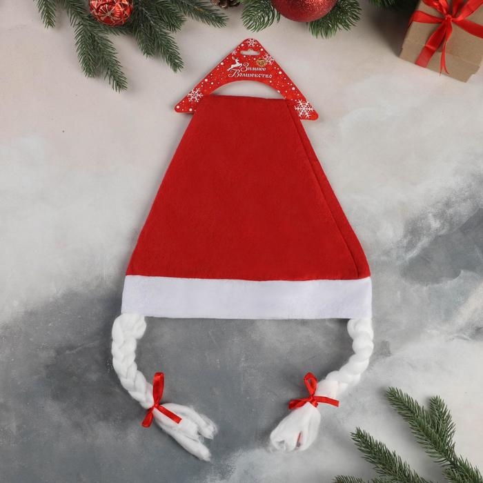 Колпак новогодний "Классика косы" 37х27 см, красный