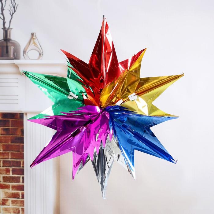 Используйте декор из фольги в просторных помещениях, просто подвесьте его в удобном месте и наслаждайтесь весёлым Новым годом!