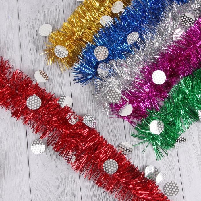 Мишура "Всплеск кружочки" d-8 см 200 см, микс поможет создать яркий декор, например, выложите ей число грядущего года. Ещё искрящееся украшение послужит нарядным аксессуаром: браслетом, бусами или головным убором.