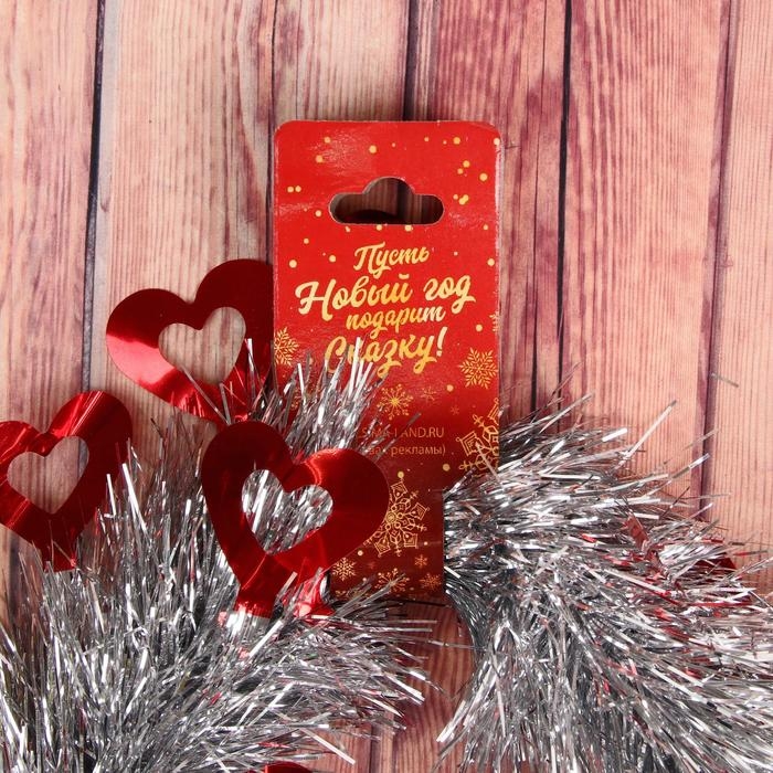 Нарядную мишуру с фигурными вставками можно использовать не только для украшения ели, сделайте из неё саму ёлочку! Просто обмотайте искристую нить вокруг картонной основы, скрученной в конус. Мишура "Ажур" сердце, d-8 см, 200 см, микс поможет создать яркий декор, например, выложите ей число грядущего года. Ещё искрящееся украшение послужит нарядным аксессуаром: браслетом, бусами или головным убором.