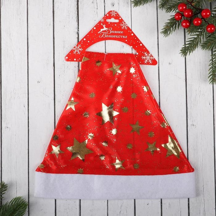 Колпак новогодний "Звёзды большие" глянец, 26х38 см, красный