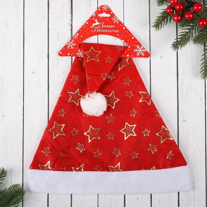 Колпак новогодний "Звёзды пустые" красный