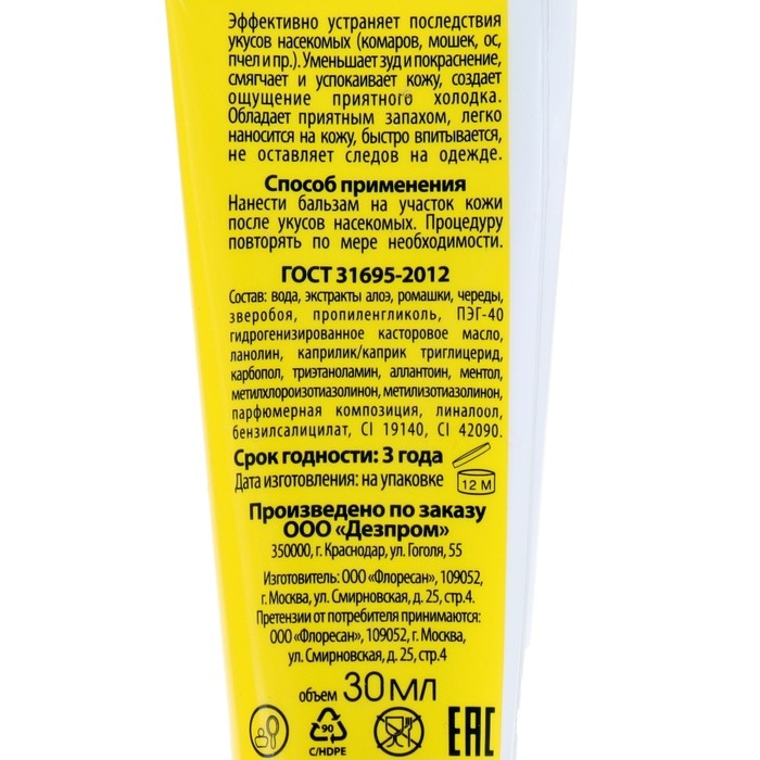 Назначение: для устранения последствий укусов насекомых (комаров, мошек, ос, пчел и т. д.).