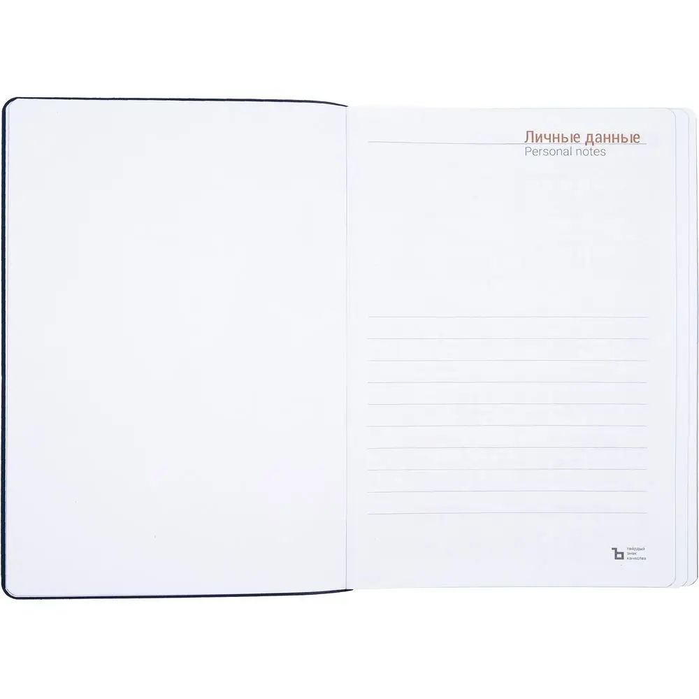 Гибкая обложка ежедневника выполнена из материала Latte, темно-синий XX. Внутри корешка — специальное место для крепления ручки размером до 15х0,9 см.