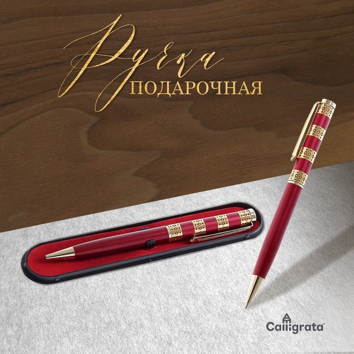 Ручка подарочная, шариковая "Роскошь" в пластиковом футляре, поворотная, бордовая с золотистыми вставками