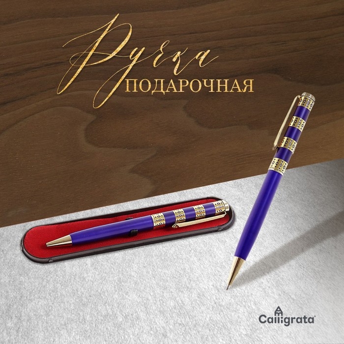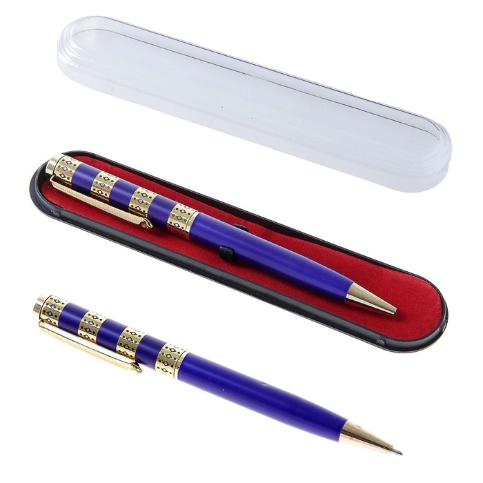 Ручка подарочная, шариковая "Роскошь" в пластиковом футляре, поворотная, синяя с золотистыми вставками