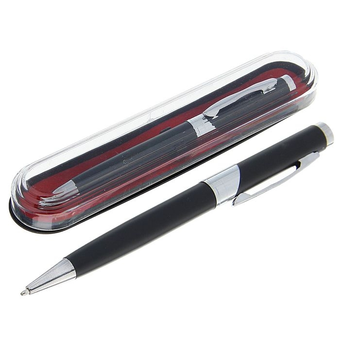 Ручка подарочная, шариковая "Бизнес" в пластиковом футляре, поворотная, чёрная с серебристыми вставками