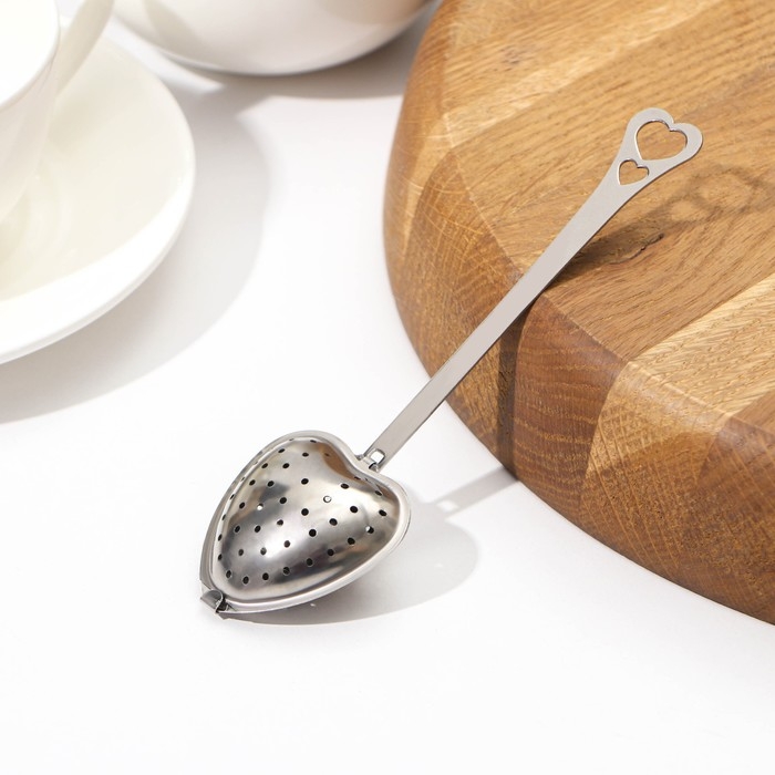 Ситечко для чая Доляна «Сердце», 14,5×4 см, цвет серебристый