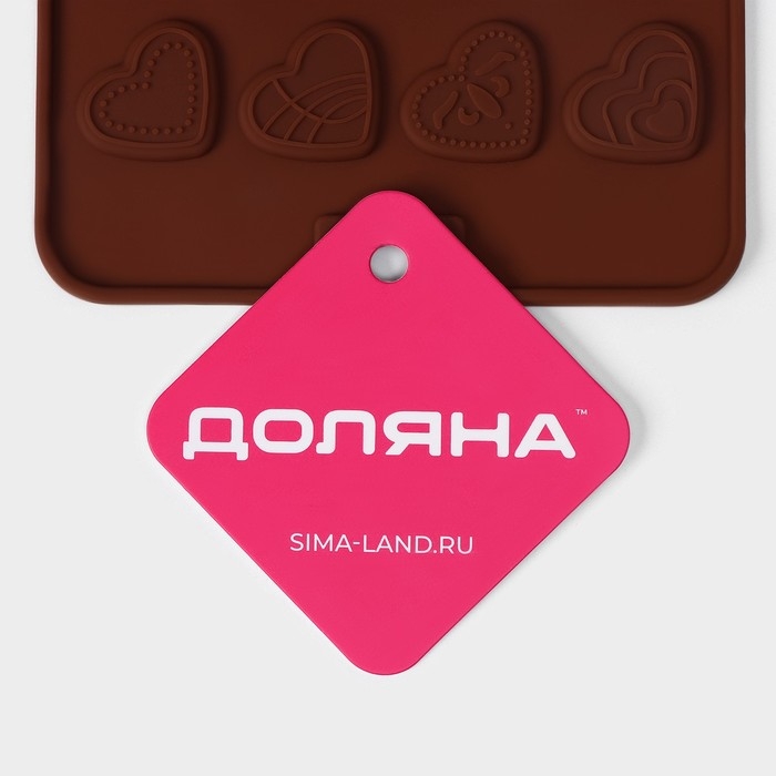 Форма для кондитерских украшений Доляна «Сердечки», силикон, 21×11,5 см, 24 ячейки, цвет коричневый