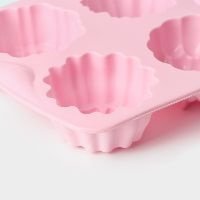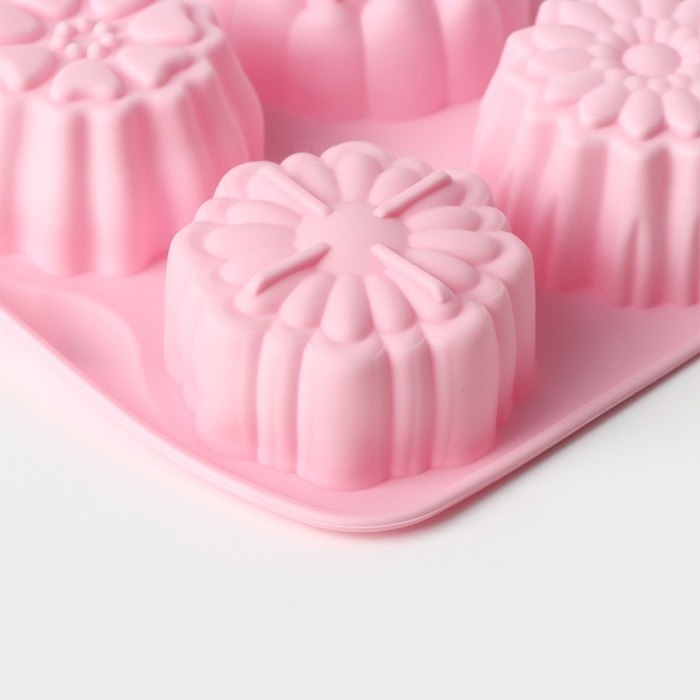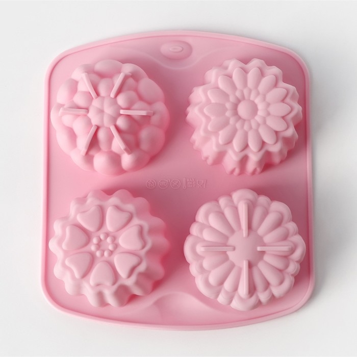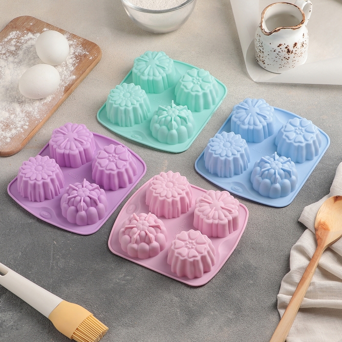 Форма для выпечки Доляна «Цветы. Цветочная долина», силикон, 14×16 см, 4 ячейки, цвет МИКС