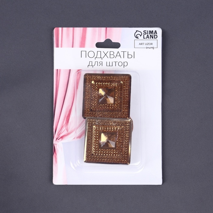 Подхват для штор «Блестящий квадрат», 4 × 4 см, цвет коричневый