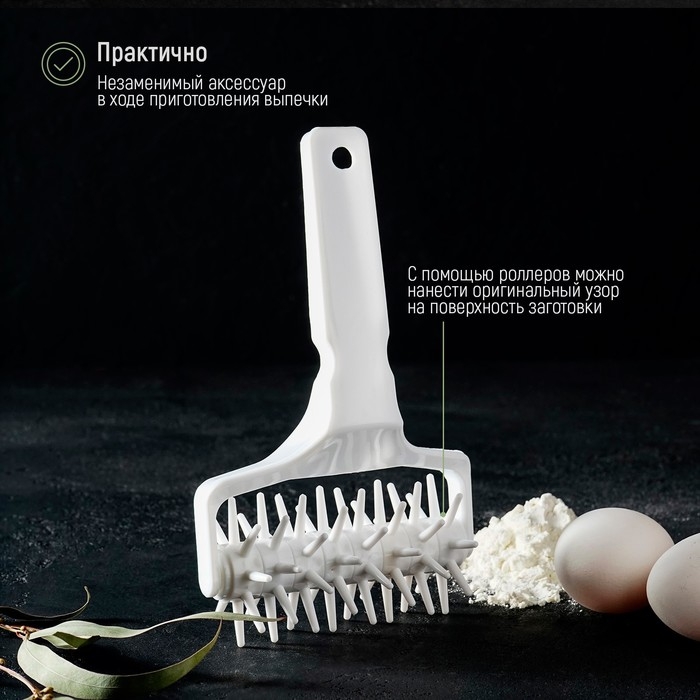 Валик для нарезки теста Доляна «Сетка», 20×7×4,5 см, цвет белый