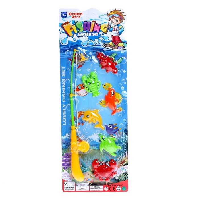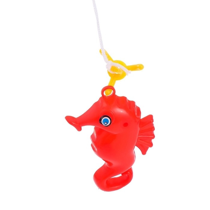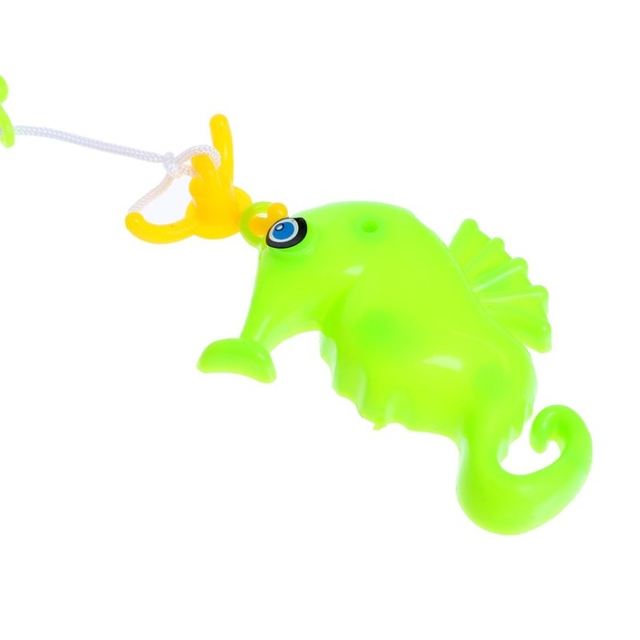 На каждой из рыбок имеются петелька, а на удочке - крючок, поэтому ловить морских обитателей не составит труда.