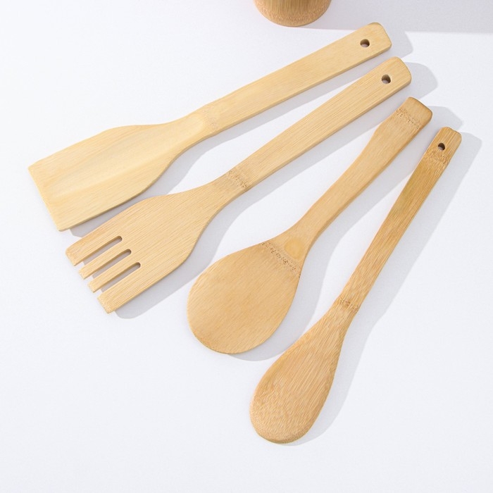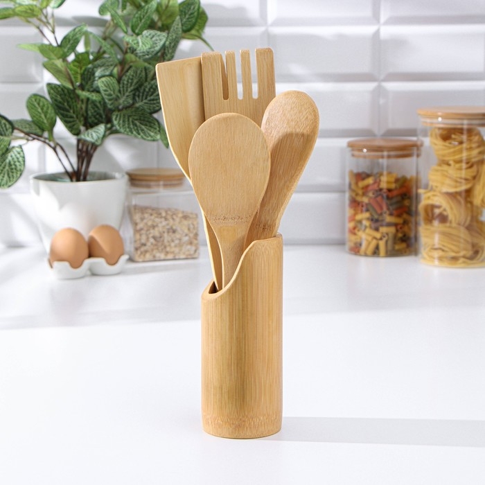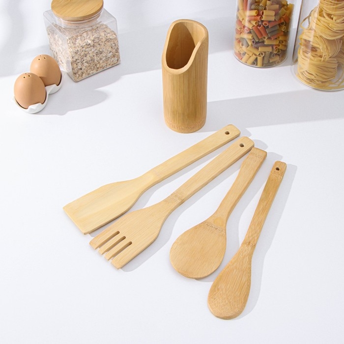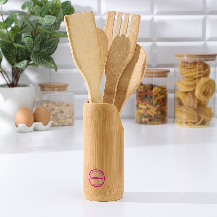 Набор кухонных принадлежностей Доляна «Дуновение леса», 4 предмета на подставке: 2 лопатки, 2 ложки