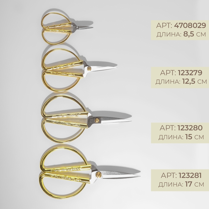 Ножницы для рукоделия, скошенное лезвие, 5", 12,5 см, цвет золотой