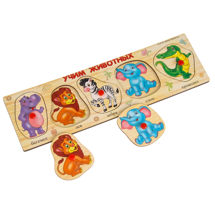Для малыша мир полон удивительных загадок и открытий, увлекательных головоломок и постоянного поиска решений. Поддержать эту врожденную любознательность помогут крохе развивающие игрушки. Рамка – вкладыш "Учим животных" познакомит вашего малыша с животными Африки и поможет выучить их названия. Под каждым животным есть подпись, и со временем малыш научится не только узнавать картинки, но и читать.