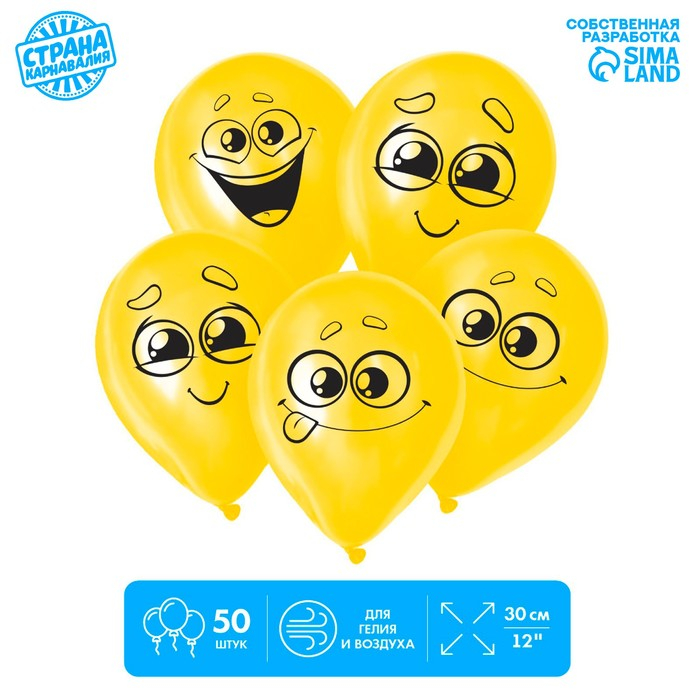 Шар латексный 12" «Улыбочки», 50 шт.