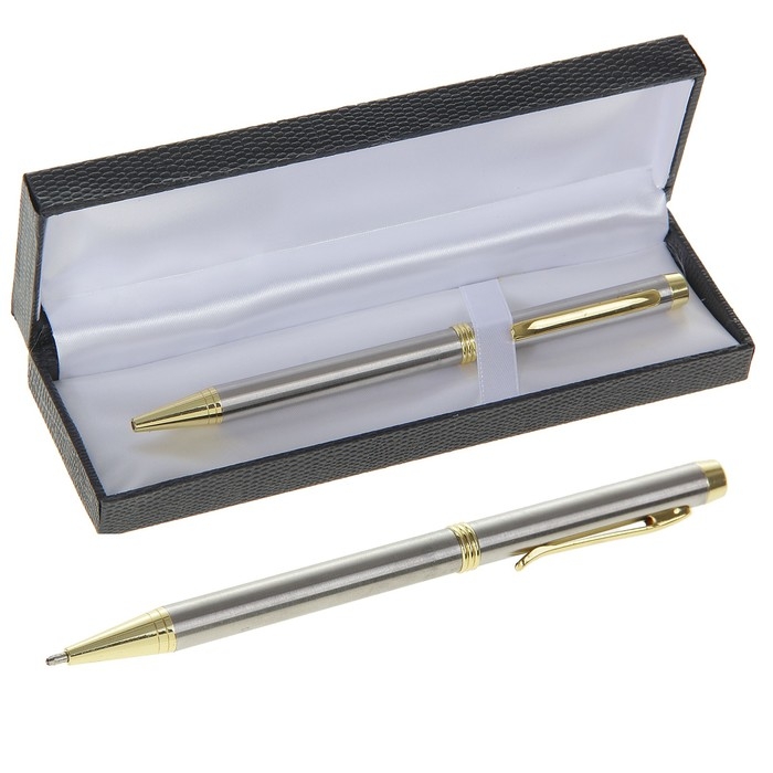 Шариковая подарочная ручка в футляре из кожзама – продемонстрирует ваш безупречный вкус и подчеркнёт статус своего обладателя. Обтекаемый металлический корпус декорирован блестящими деталями, а футляр имитирует натуральную кожу.