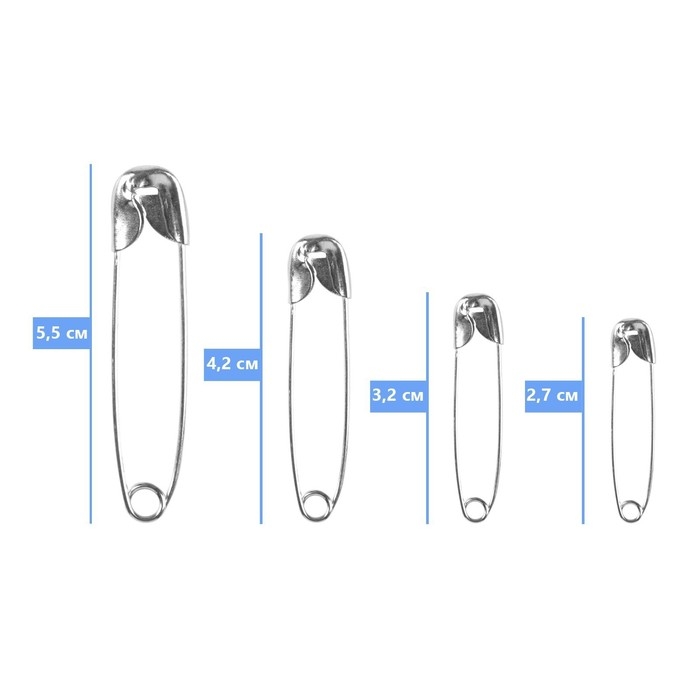 Набор булавок английских, 27 / 32 / 42 / 55 мм, 60 ± 5 шт, цвет серебряный