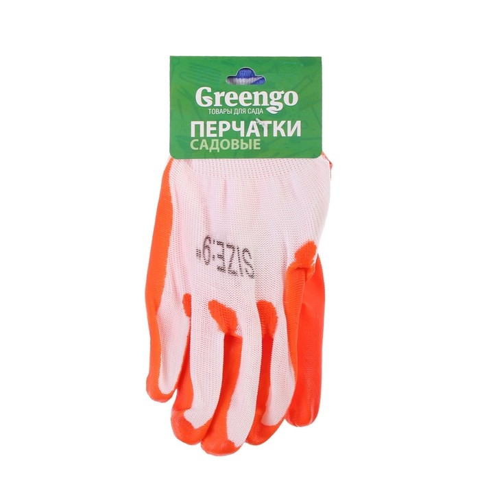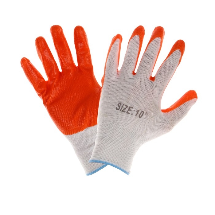 Перчатки садовые, нейлоновые, с нитриловым полуобливом, размер 10, оранжевые, Greengo