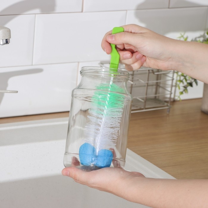 - Кухонные ёршики подходят для мытья посуды, банок, колб кальянов, ваз, кувшинов, чайников, бутылок, термосов, стаканов, графинов и прочей глубокой посуды с узким горлышком.