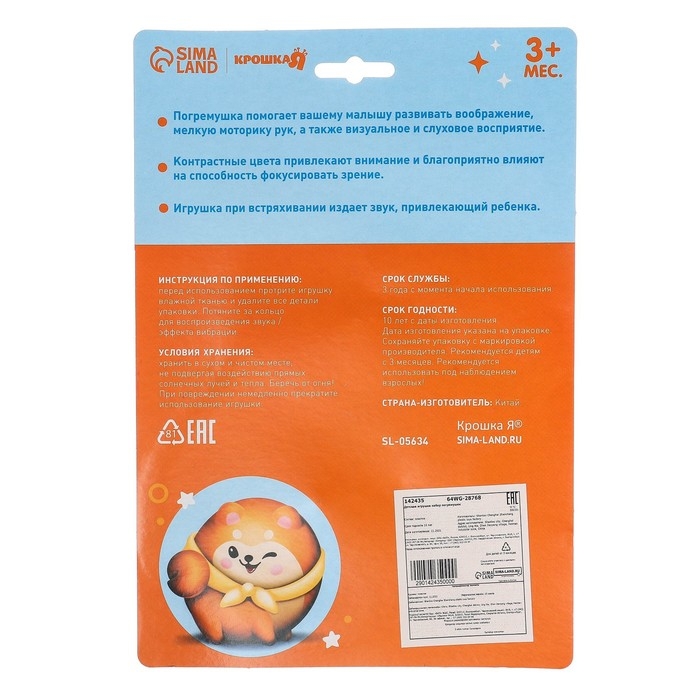 - Легкость и удобство использования: Наши погремушки имеют оптимальный размер и форму для маленьких ручек ребенка. Они легко ухватываются и удобно держатся, позволяя малышу самостоятельно исследовать и играть с ними.