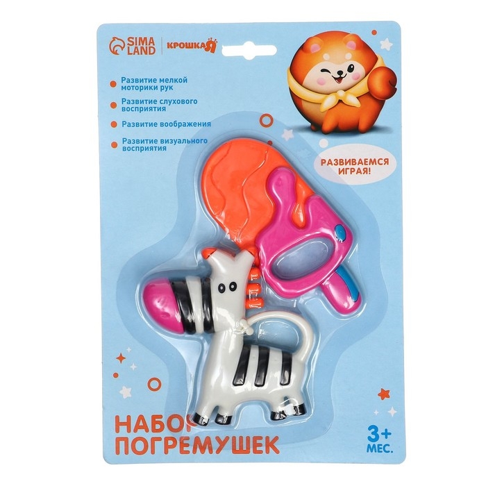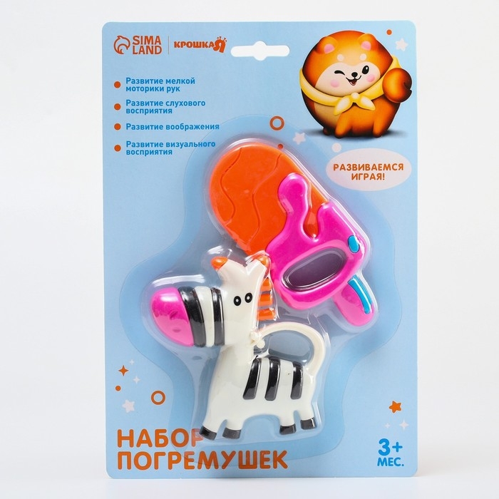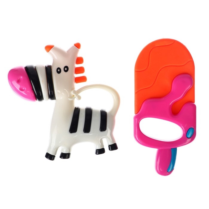 Набор погремушек - прорезывателей «Зебра и Эскимо», 2 шт, Крошка