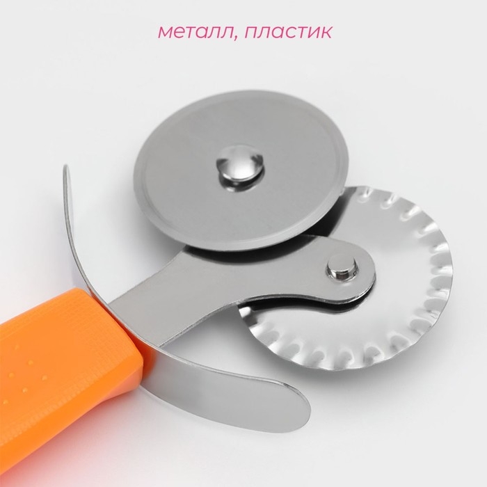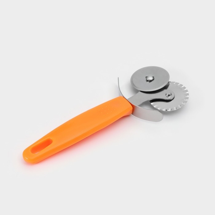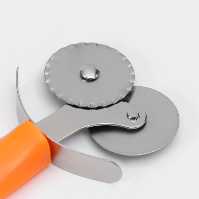 Нож для пиццы и теста Доляна «Оранж», 17 см, 2 лезвия, цвет оранжевый