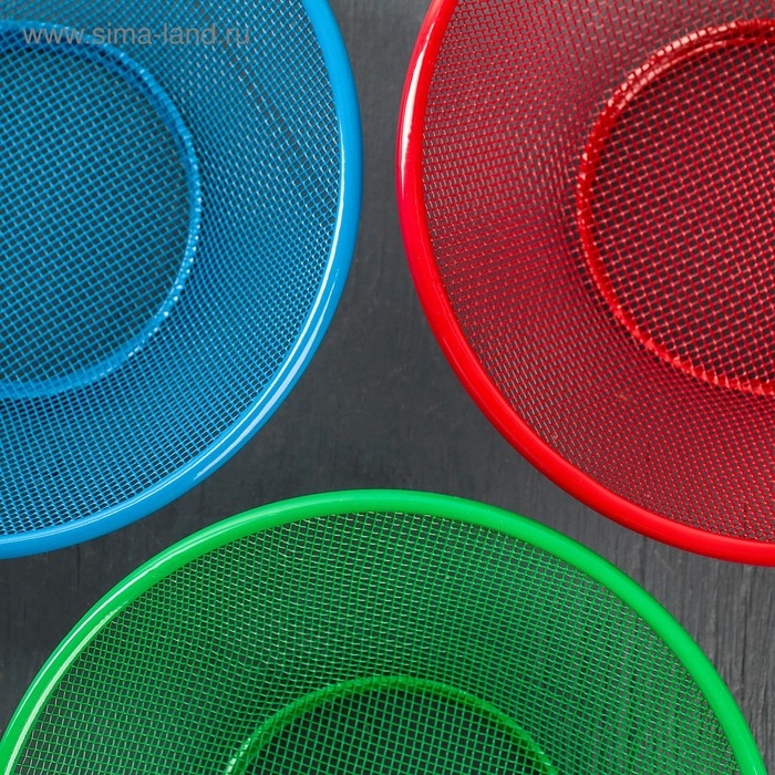 Прочная металлическая сетка поможет избавиться от крупных инородных тел и тщательно промыть содержимое. Яркие цвета делают изделие привлекательным, а прочный металлический ободок гарантирует прочность конструкции и защищает её от деформации.