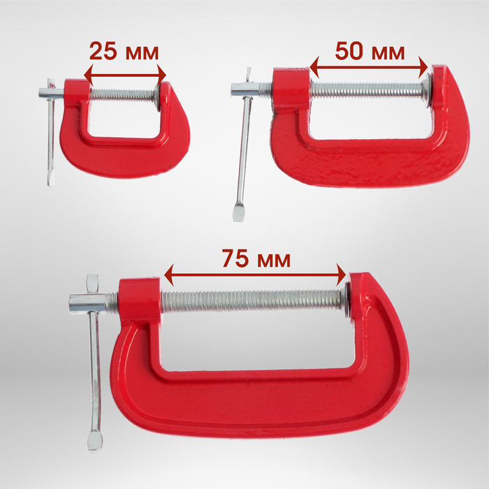 Набор струбцин G-образных ЛОМ, 1-2-3" (25-50-75 мм), 3 шт.